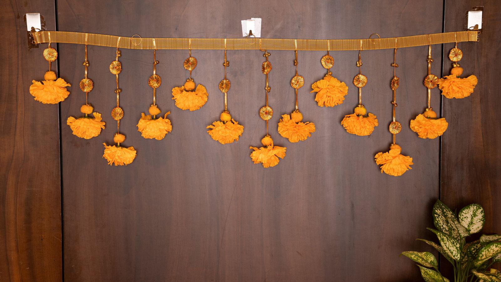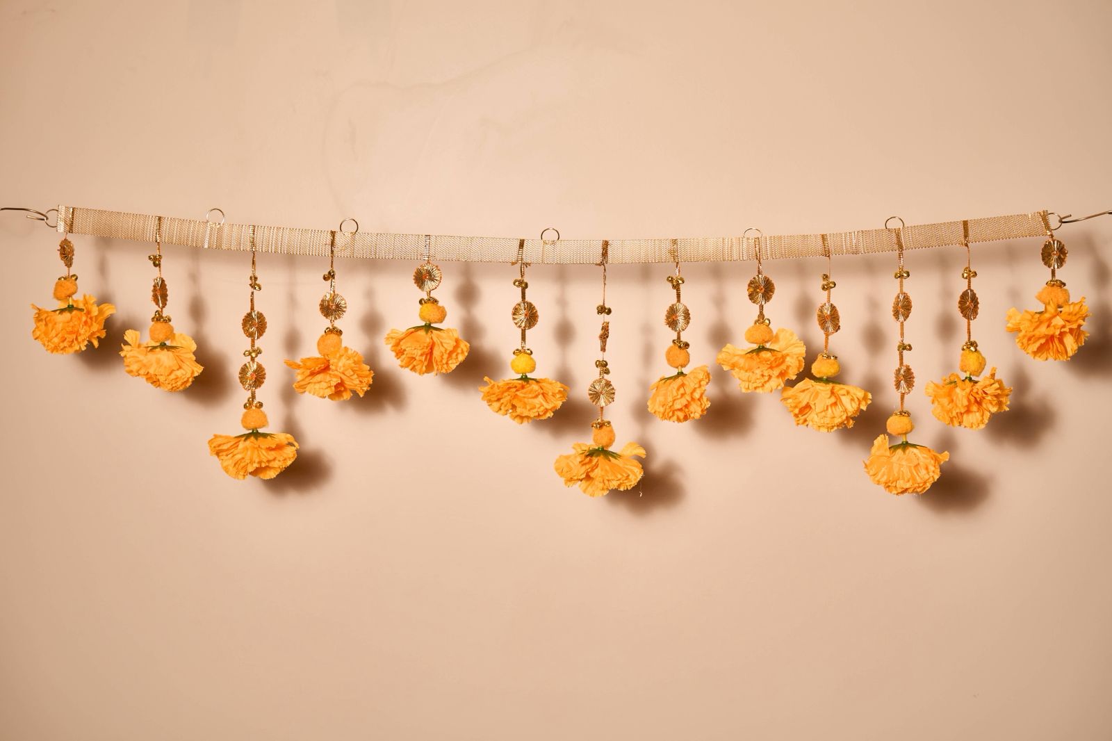 39 Inches standard size, size can be customised Made of imported flowers, gota and ghungroo