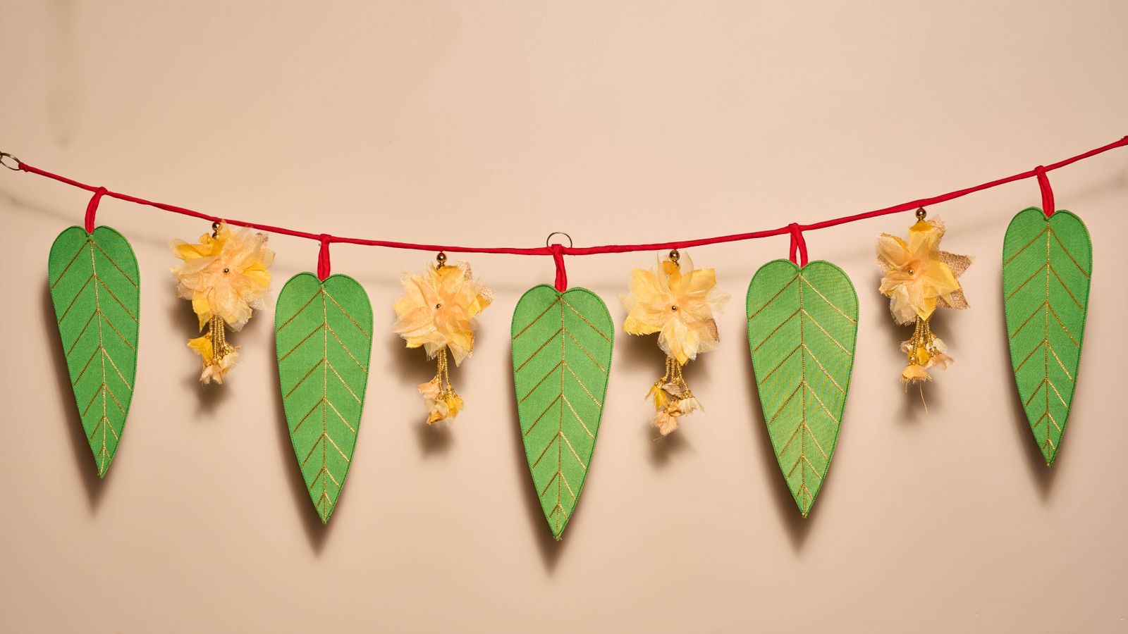 size can be customised, Leaves with zari work and handmade organza flowers